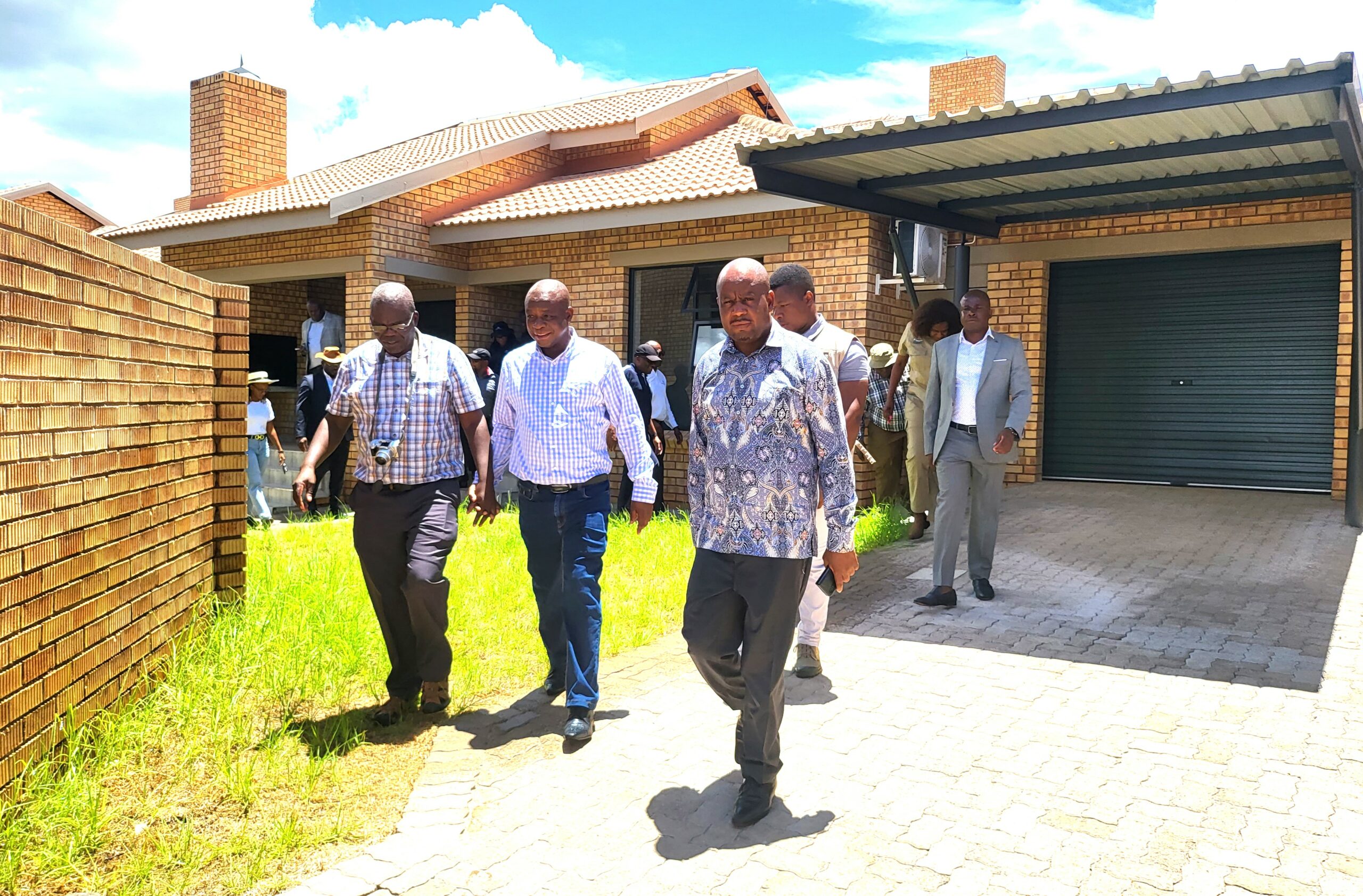 The MEC for Cooperative Governance, Human Settlements and Traditional Affairs (Coghsta) Mr Basikopo Makamu visited Musina to monitor progress in the De Beers Venetia Mine BMH housing project and Musina Municipality Rhino Ridge Township Establishment. The MEC was joined by Musina Mayor, Cllr Nkhanedzeni Godfrey Mawela, Venetia Mine Senior General Manager Mr Ntokozo Ngema, members of the Musina Municipality Political Management Team (PMT) and officials from De Beers Venetia Mine, Musina Municipality and Coghsta. The MEC was satisfied with the progress in both projects and praised Musina Municipality and De Beers Venetia Mine for their effort to bring integrated human settlements in Musina.